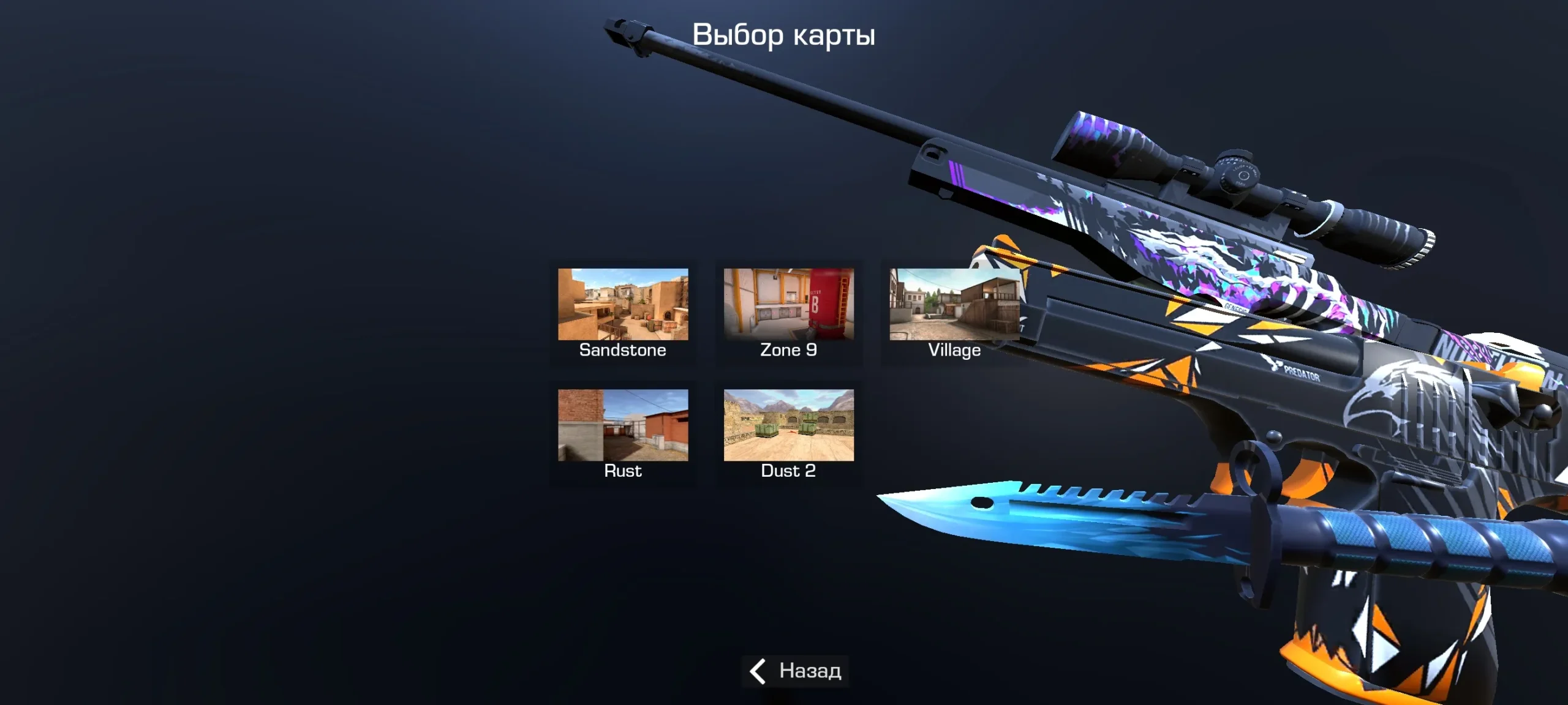 - Для игры доступно 5 локаций: Sandstone, Zone 9, Village, Rust и Dust 2